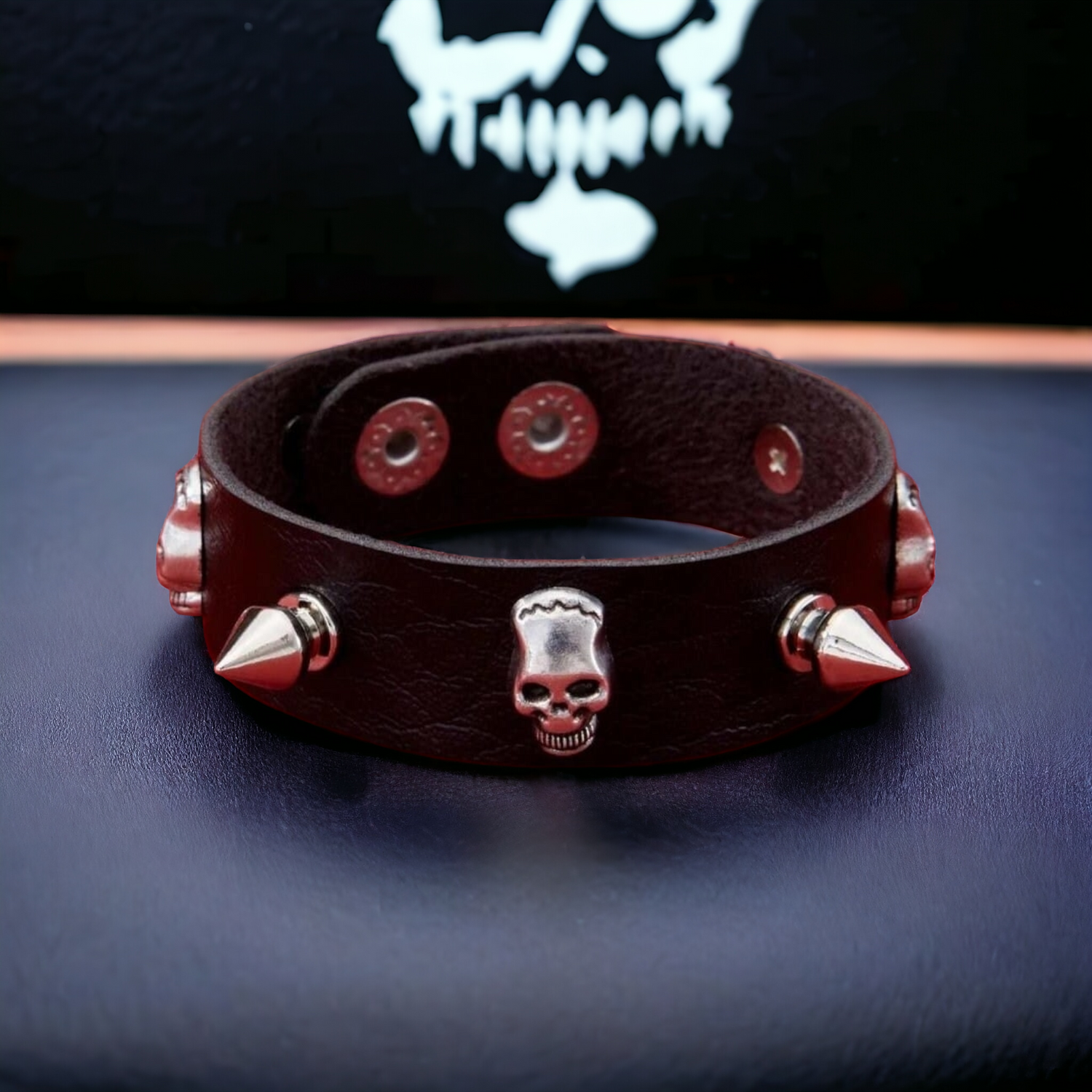 Skulls & Spikes PU Leather Bracelet - An Unmistakably Gothic Vibe